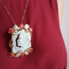 Particolare cammeo inciso a mano su conchiglia corneola e montato in argento 925 bagnato in oro giallo.