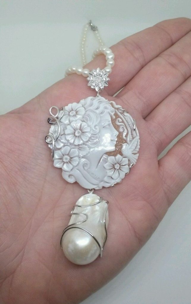 Il ciondolo con cammeo può essere utilizzato indipendentemente dalla collana con qualsiasi altra catena ed il filo di perle può essere utilizzato anche senza cammeo. Per questo risulta essere un gioiello artigianale molto versatile.