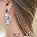 Orecchini montati in argento 925 rodiato, montatura semplice e leggera che lascia protagonisti pietre e cammei floreali.