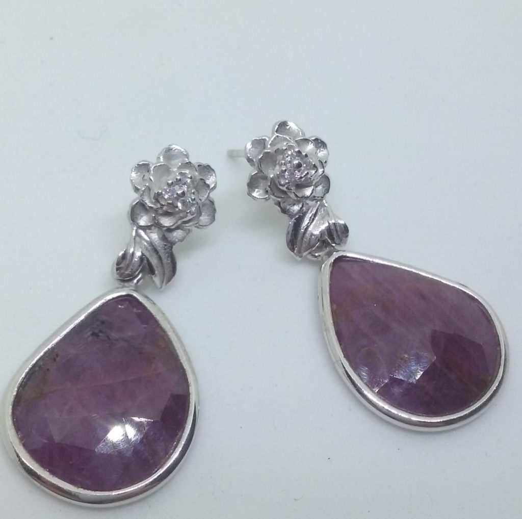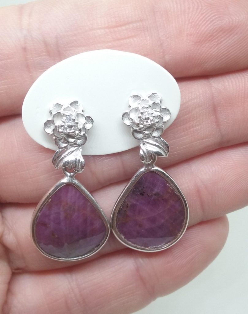 Orecchini con coppia di Rubini rose cut. Realizzato in argento 925 rodiato con l’inserto di zirconi.