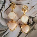 Orecchini con cuori di corallo rosa e argento dorato vintage.