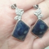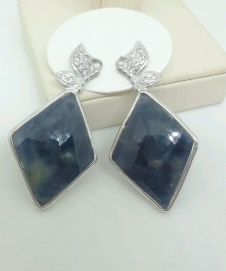 Orecchini in argento 925 rodiato con zirconi bianchi e zaffiri naturali. Lavorazione eseguita a mano in tutte le fasi. Le piccole farfalle in argento sono impreziosite da zirconi bianchi.