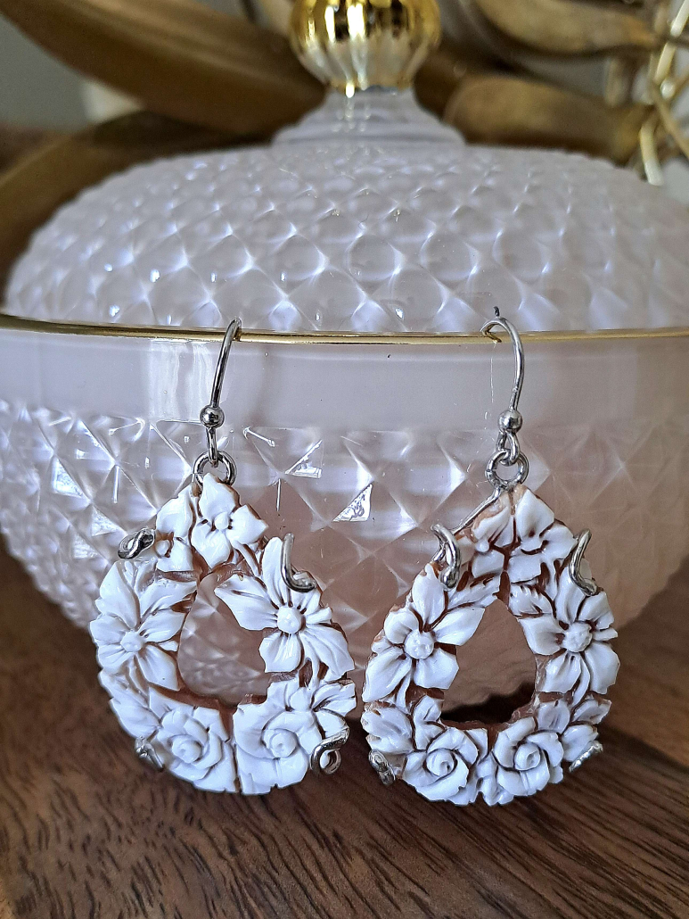Gli orecchini cammei gocce floreali rappresentano una scelta di equilibrio e di classe, un accessorio di altissima qualità artigianale da indossare con semplicità grazie ad una montatura essenziale.