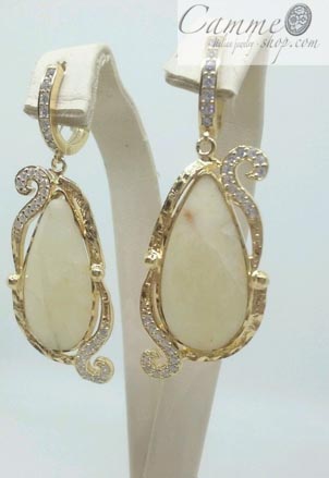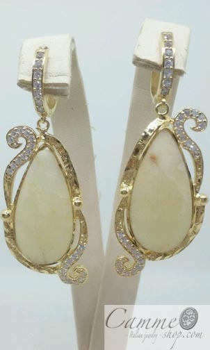 Spettacolari orecchini in argento dorato con quarzo naturale e zirconi.